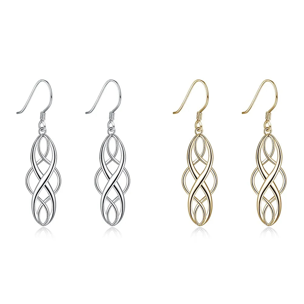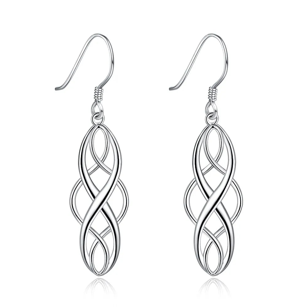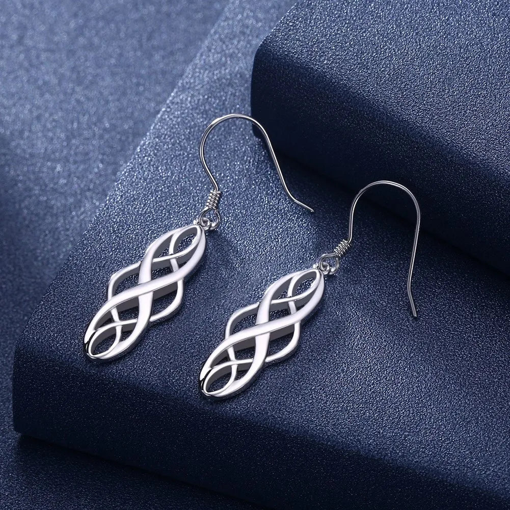 925 Sterling Silver Fashion Geometric Infinity Ladies Drop Earrings Jewelry Women