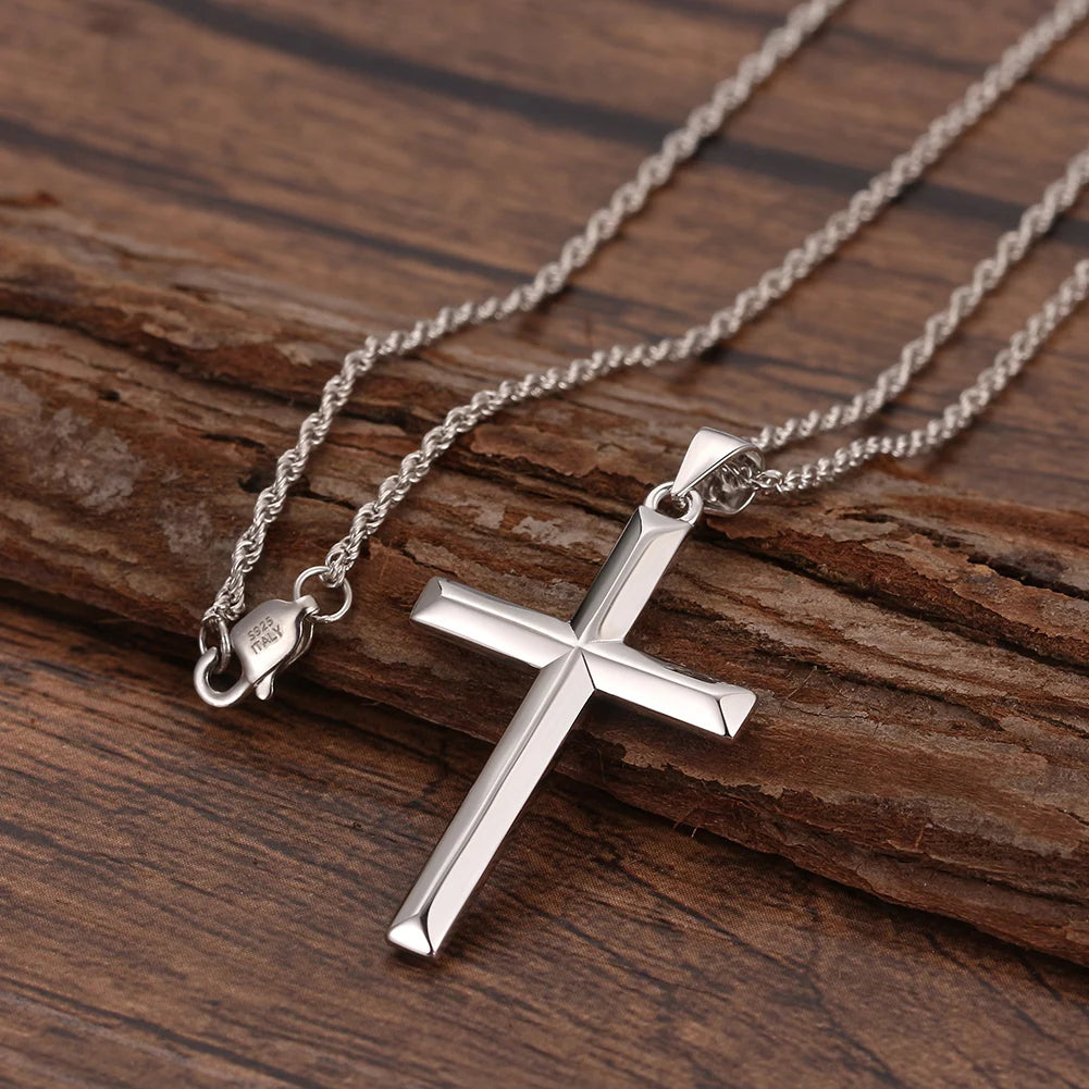 925 Sterling Silver Simple Cross Pendant for Women Men Pure Silver Fashion Christian Religious Jewelry