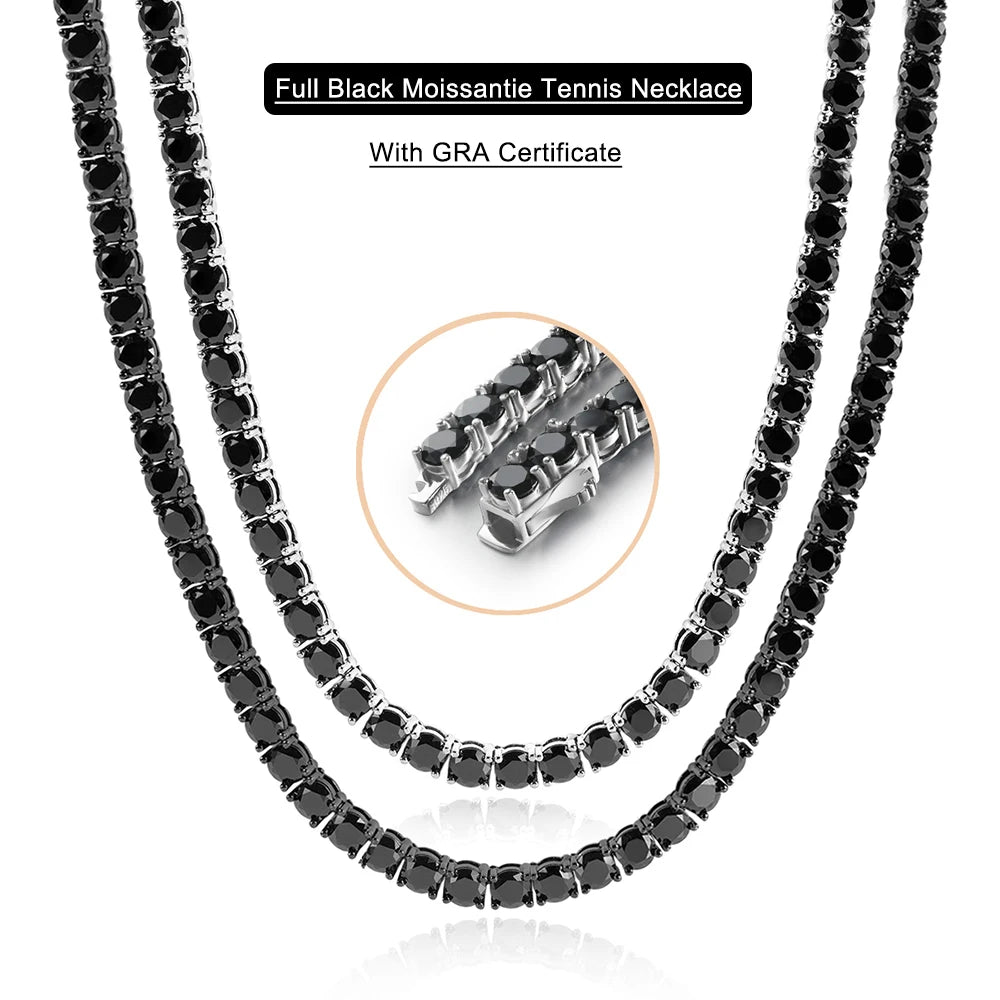 Black Moissanite Tennis Necklace Sterling Silver Gold Plated Unisex