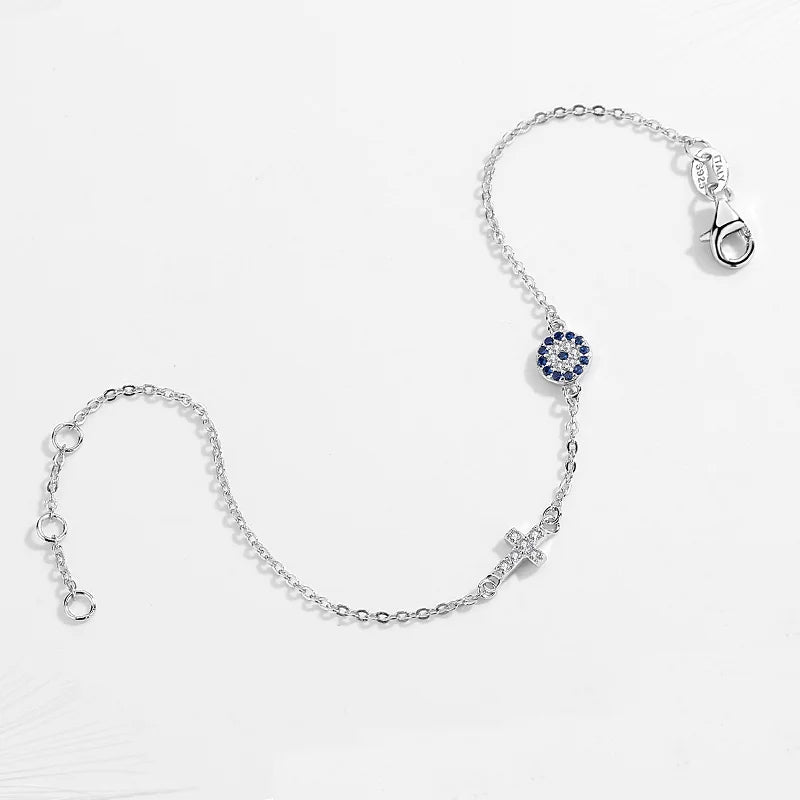 Blue Evil Eye Cross Bracelet 925 Sterling Silver Small Bracelets For Women Good Luck CZ Jewelry
