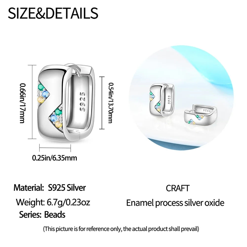 Sterling Silver Colorful Multi-stones Geometric Square Earrings For Women Jewelry