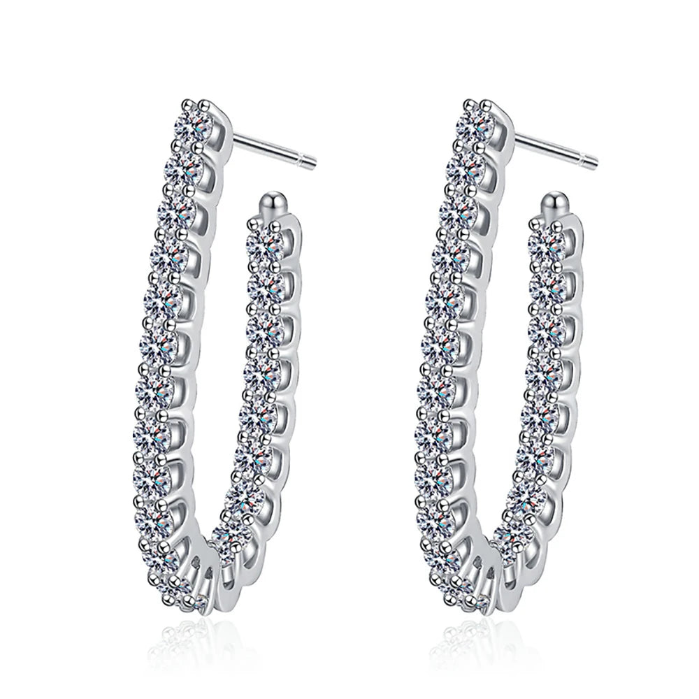 Moissanite Sterling Silver Hoop Huggie Style Stud Earrings