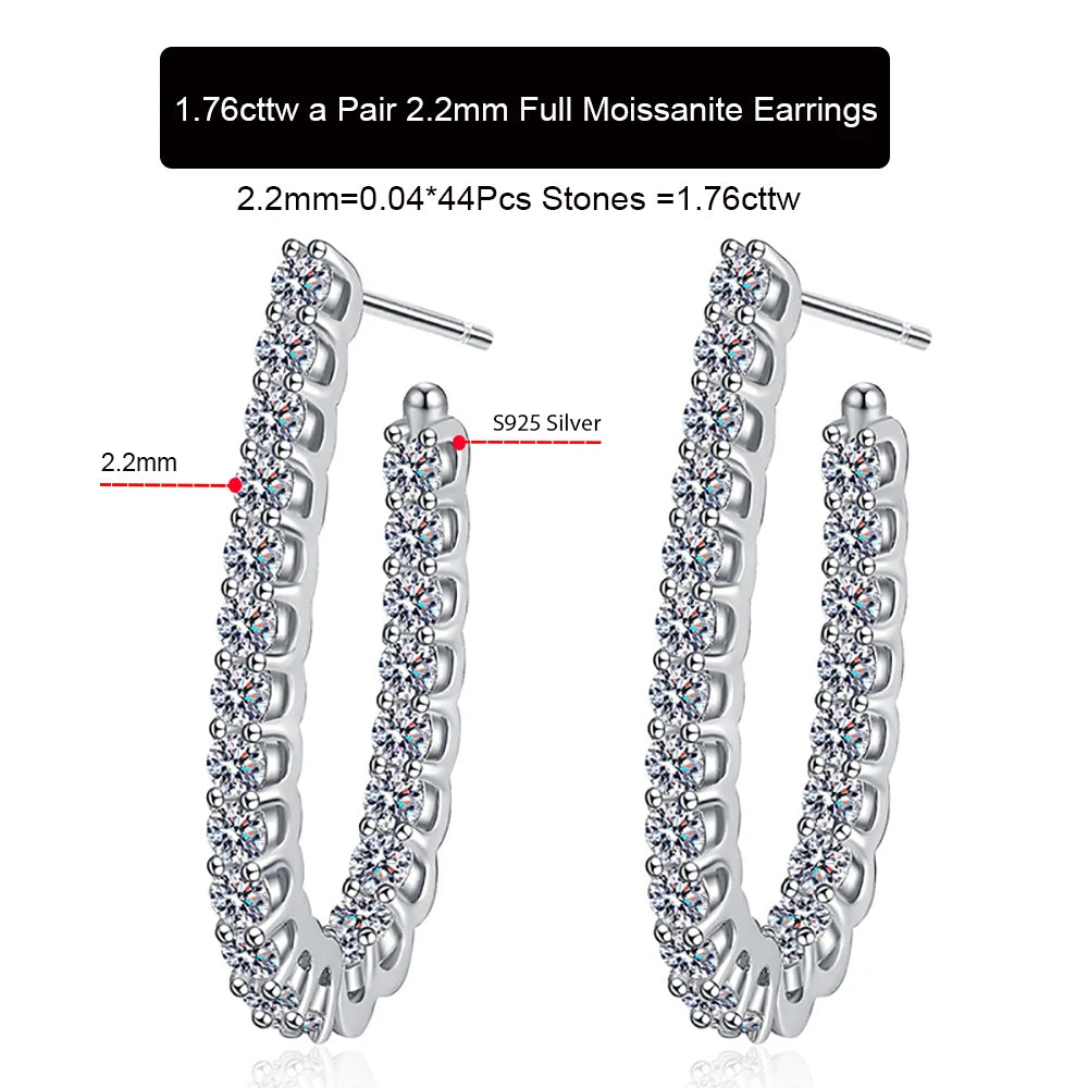 Name : 1.76cttw 2.2mm Moissanite Stud Huggie Earrings