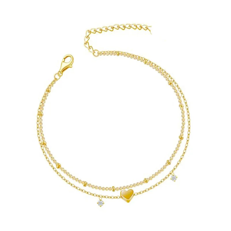 Dainty Anklets for Women Girls Layered Heart CZ Anklets 14K Gold Plated Waterproof Jewelry