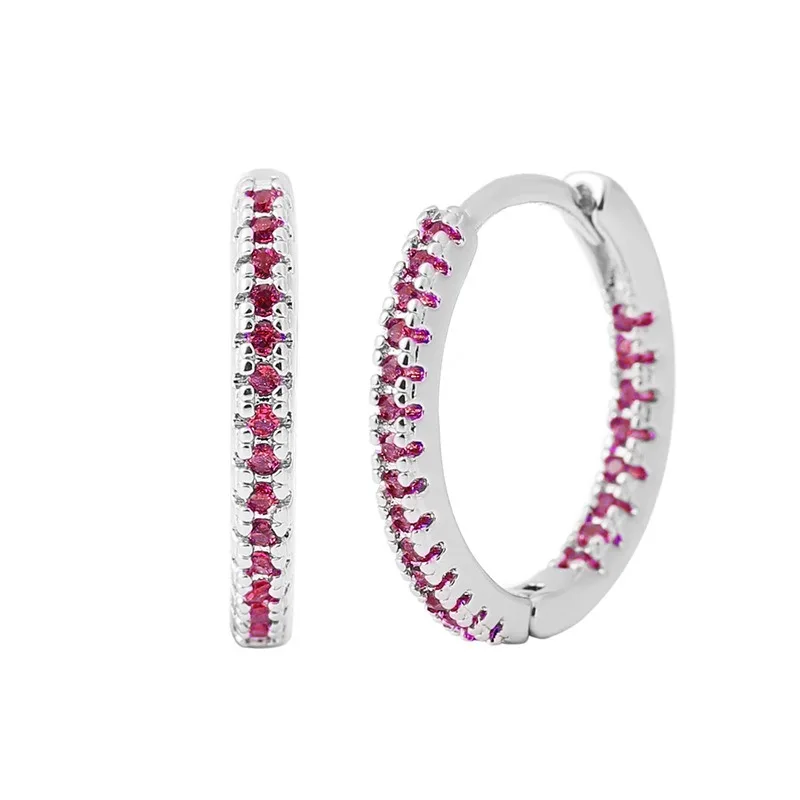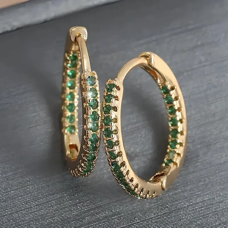 Fashionable Gold plated Hoop Earrings With Random Colored Zirconia For Women