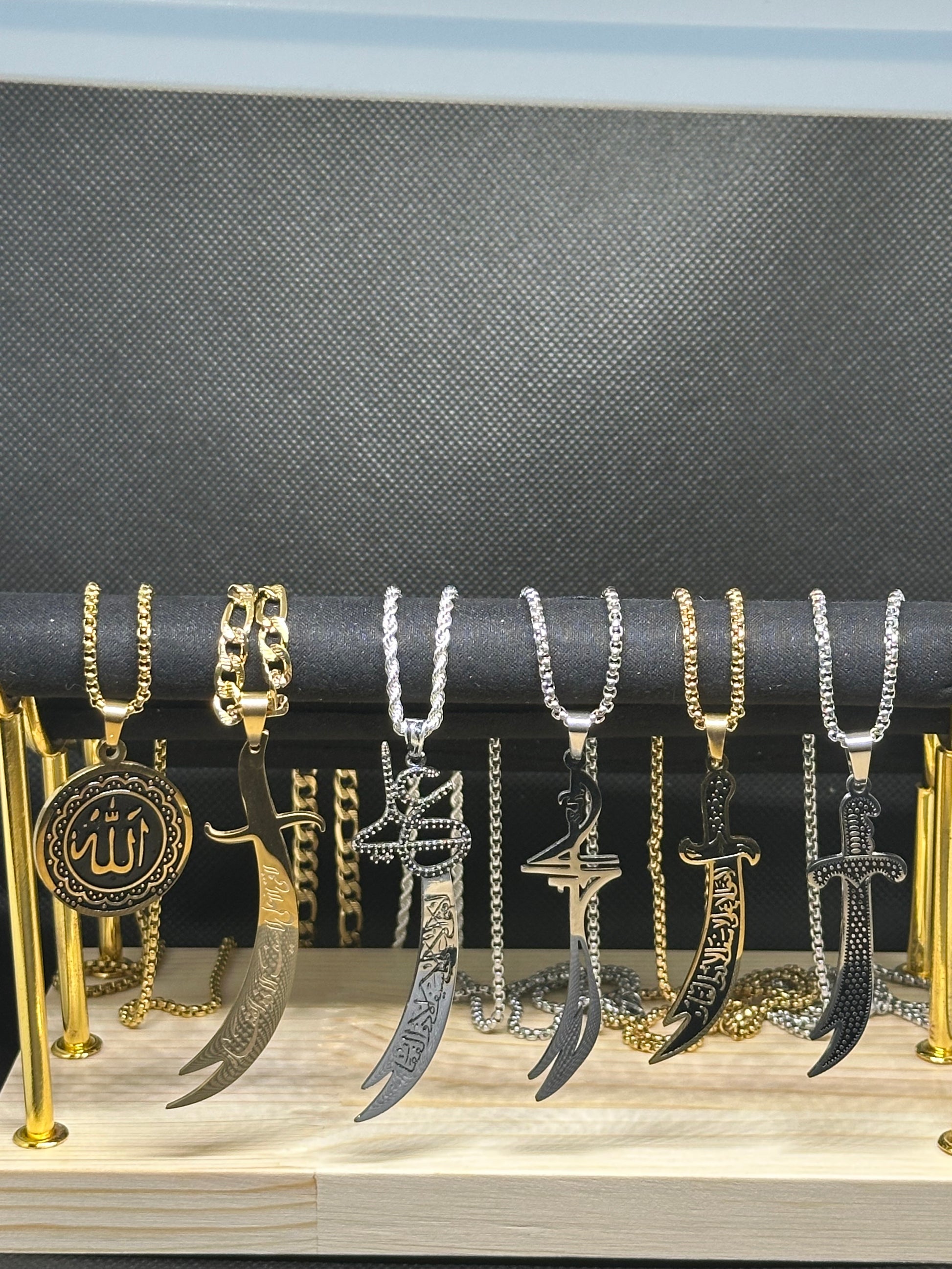 Islamic Zulfiqar sword Sterling Silver and Stainless steel Pendants