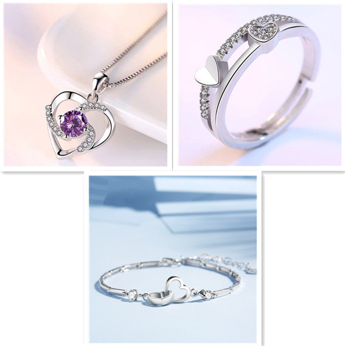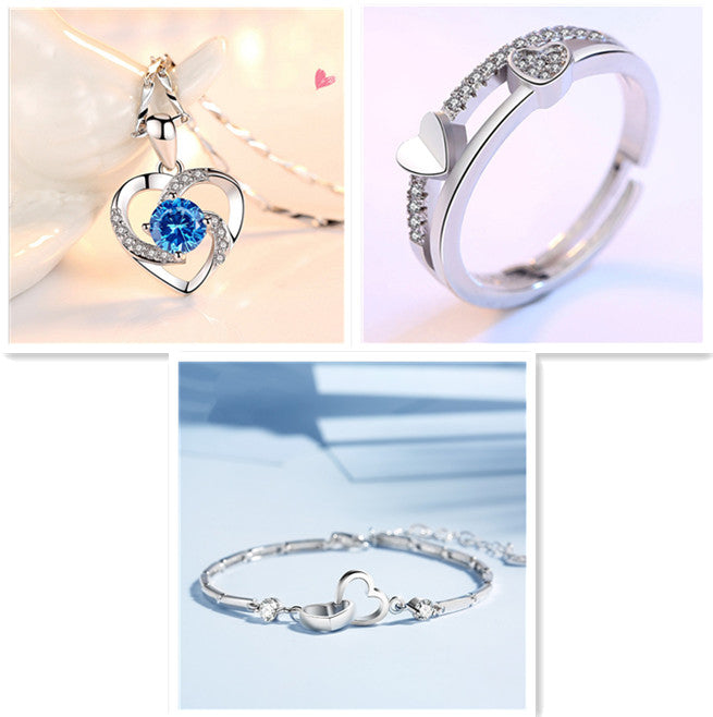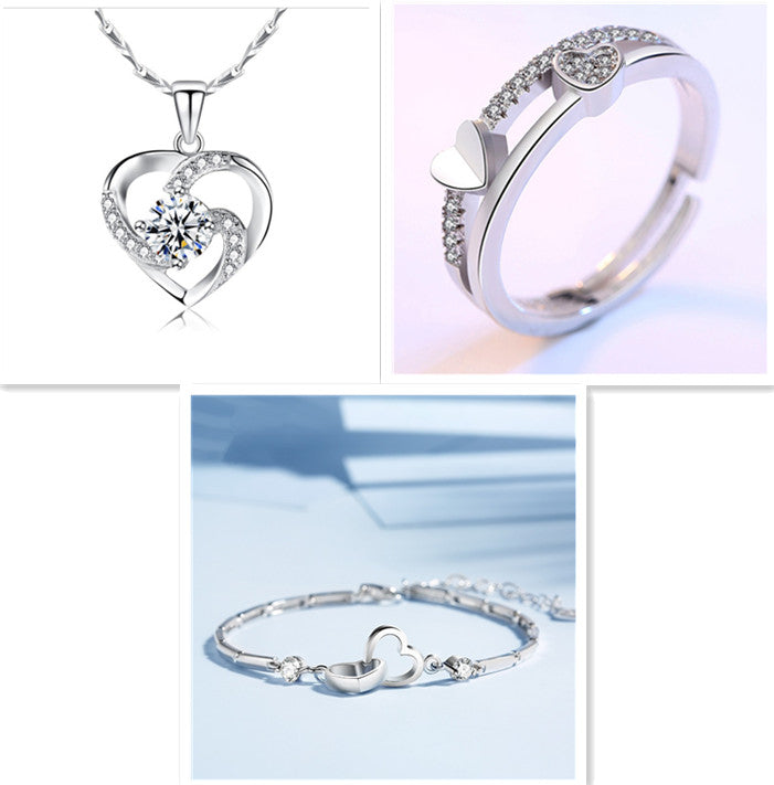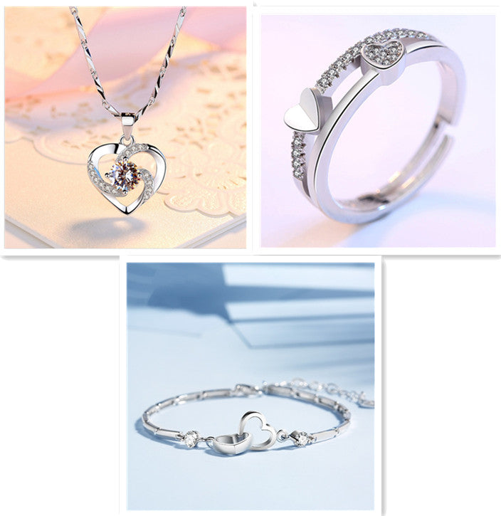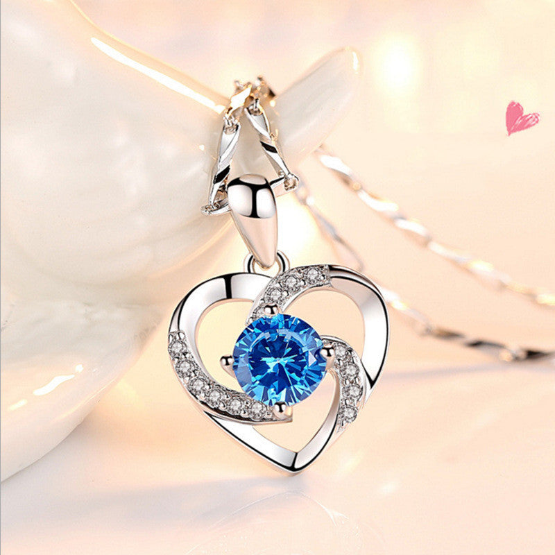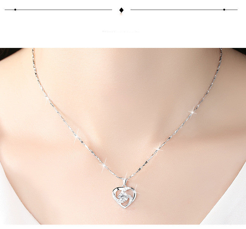 Korean Version Of The New Silver-plated Heart-shaped Pendant Female Love Diamond Necklace Clavicle Chain Simple Crystal Jewelry Wholesale