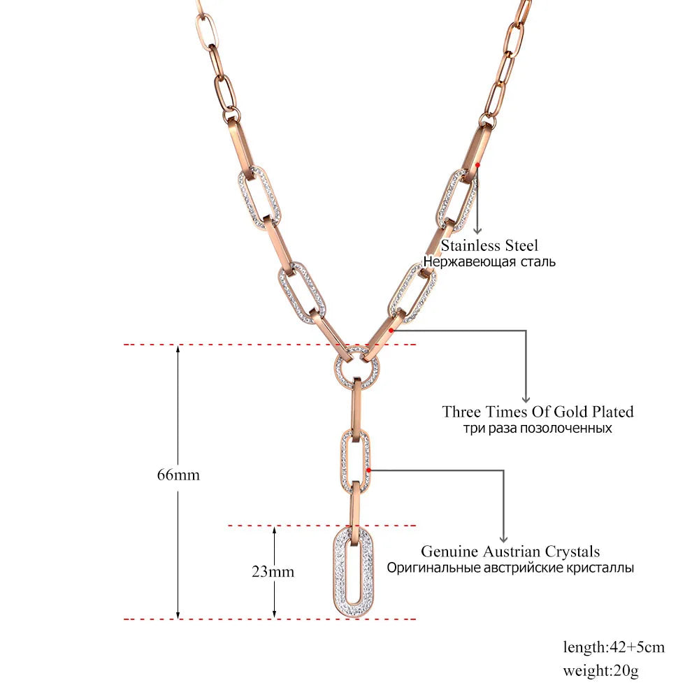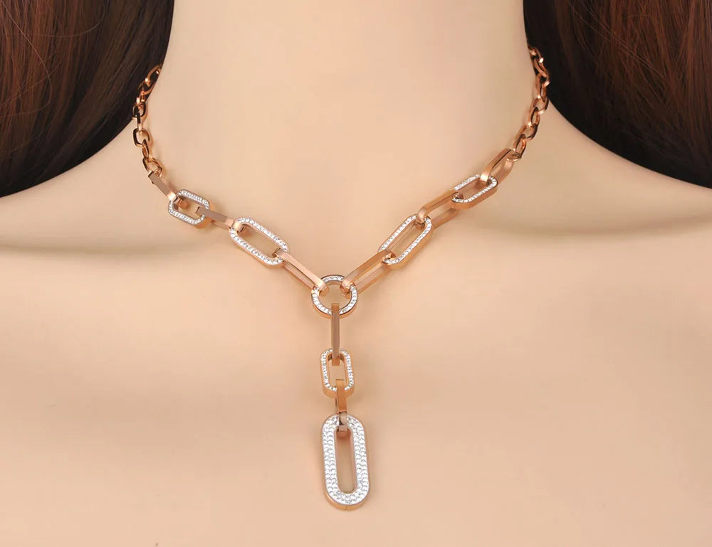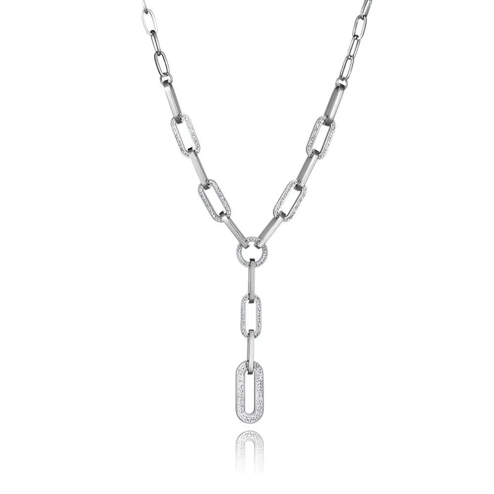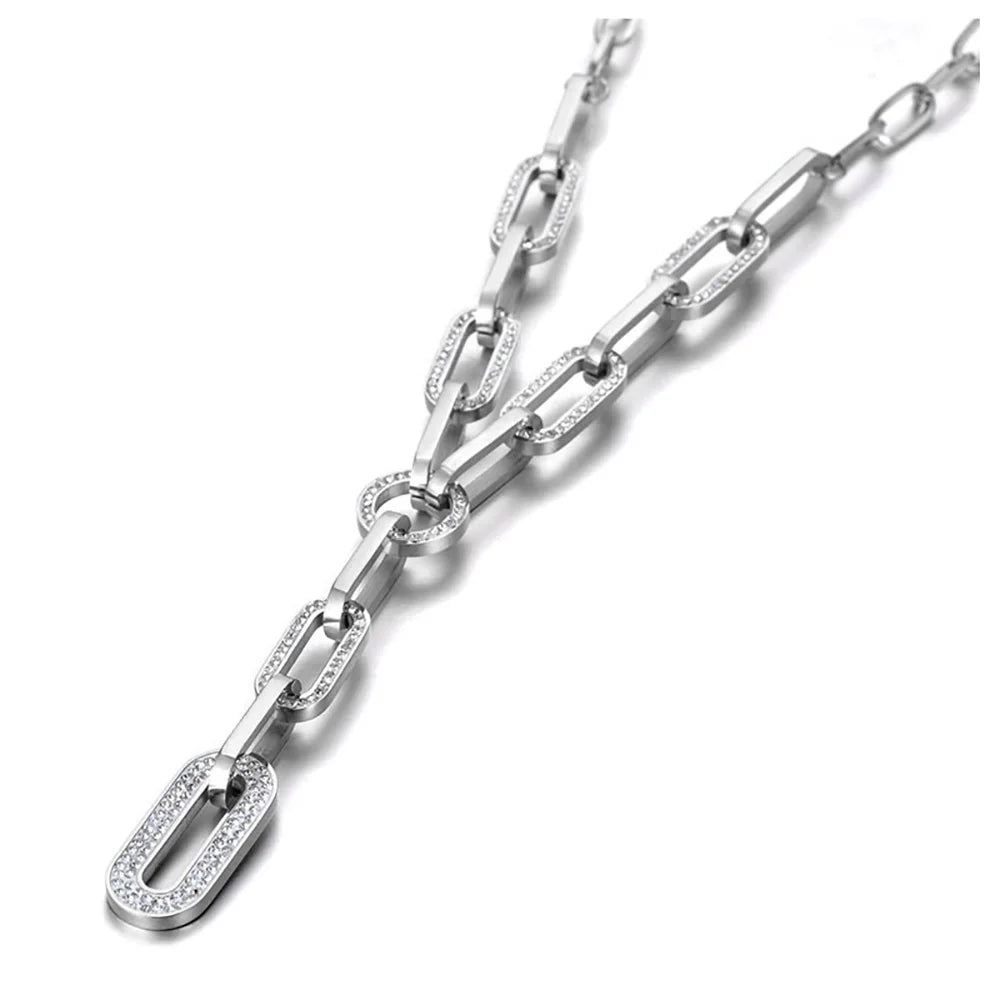 Hiphop/Rock Titanium Stainless Steel Crystal Paperclip Chain & Link Necklace