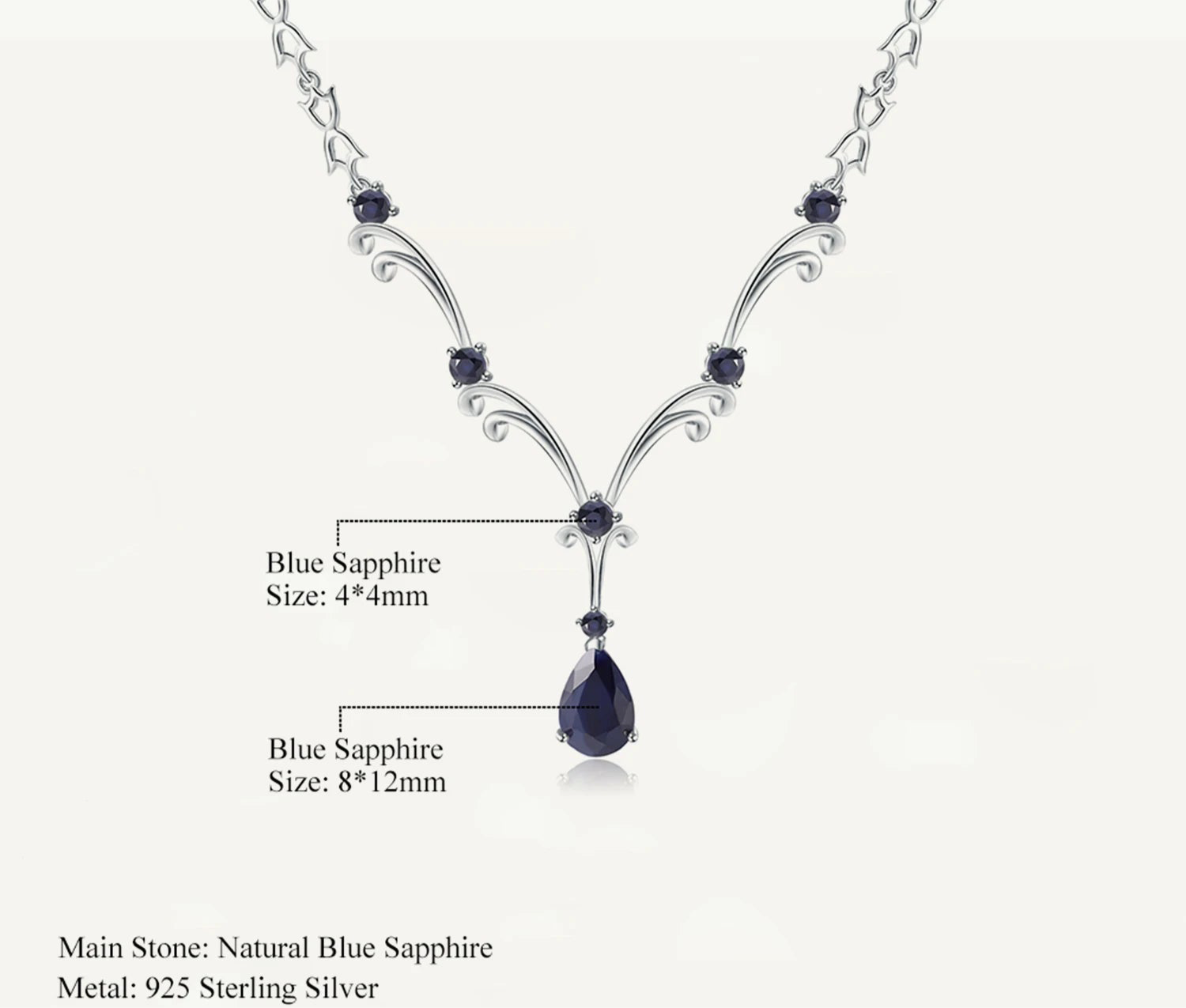 Natural Blue Sapphire Gemstone Sterling Silver Vintage Necklace