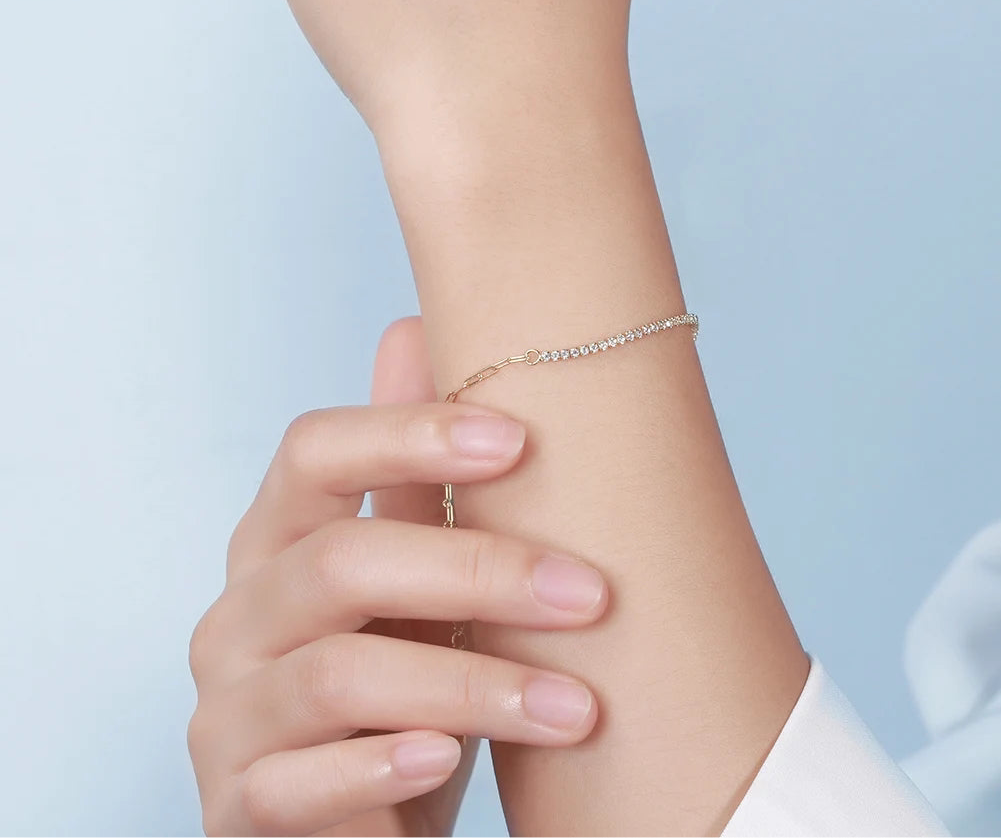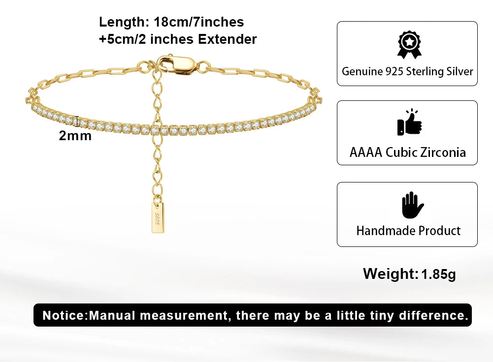 Gold Plated & Sterling Silver Paperclip Tennis Bracelet For Women