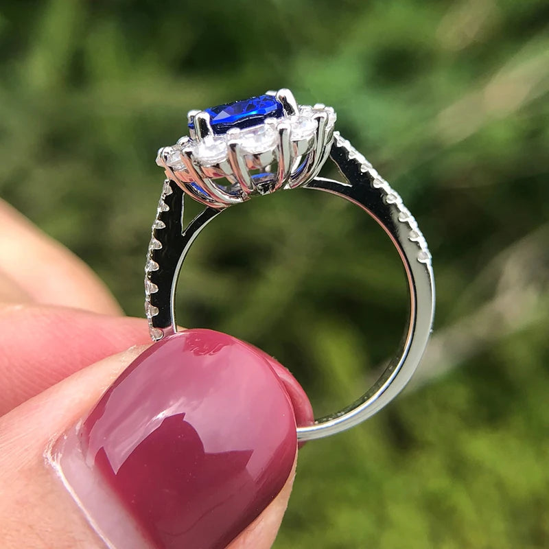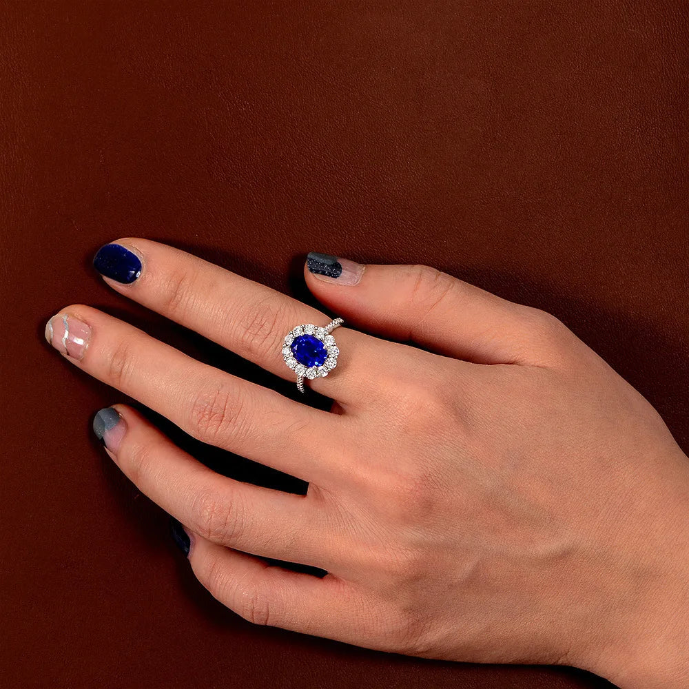 Halo Oval Created Sapphire Sterling Silver Engagement & Wedding Ring
