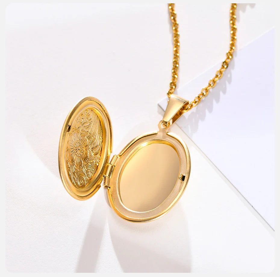 Oval Heart Locket Pendant Necklaces for Women Men Stainless Steel Photo Frame Promise Love Jewellery