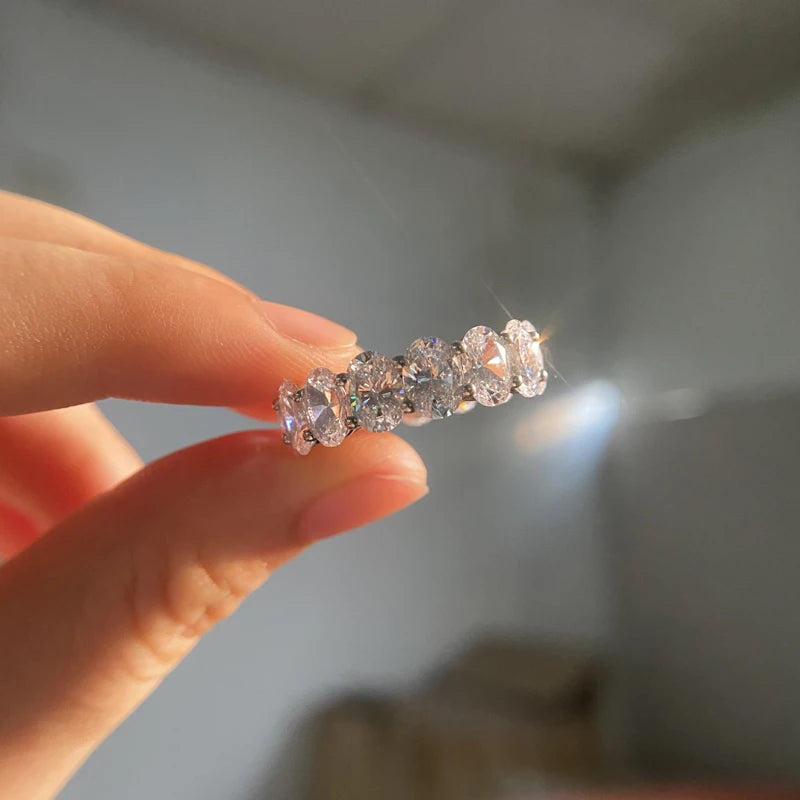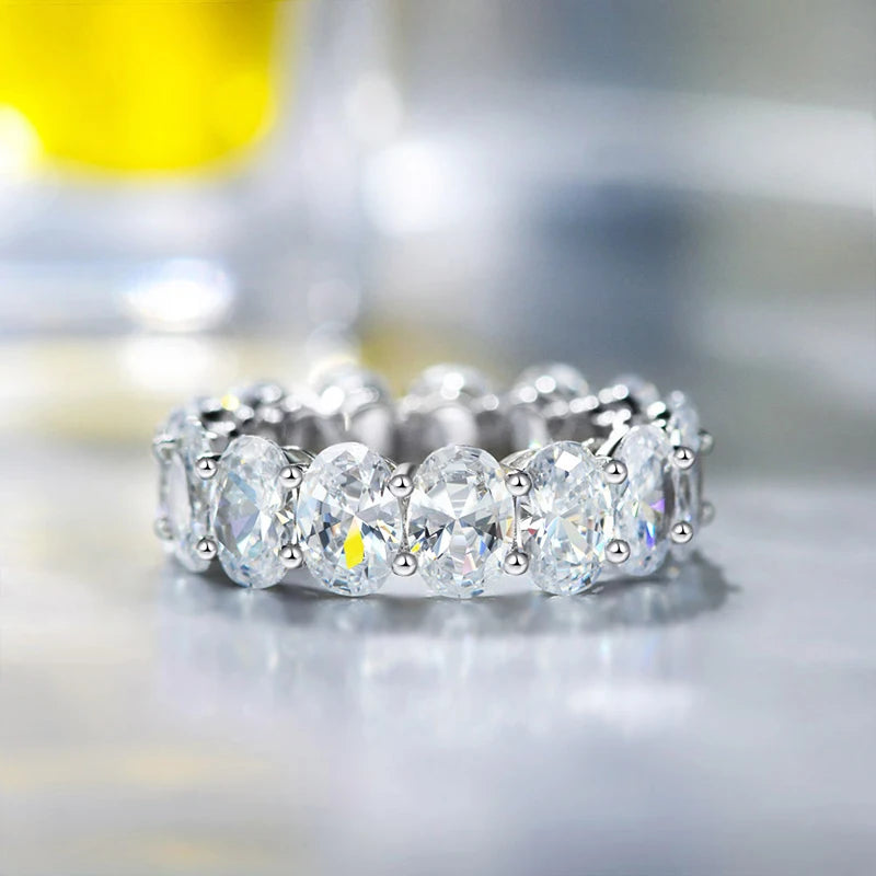Oval Shaped Zirconia Sterling Silver Eternity Band