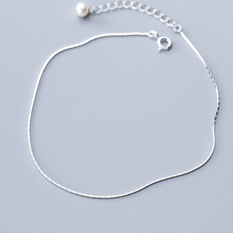Pearl Simple Snake Bone Chain S925 Silver Anklet