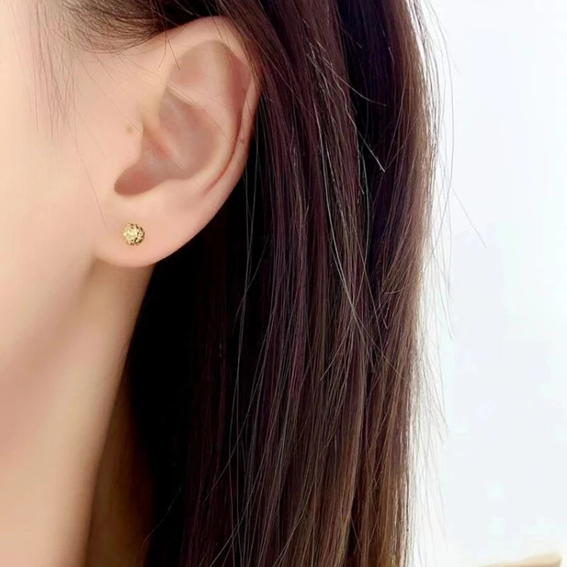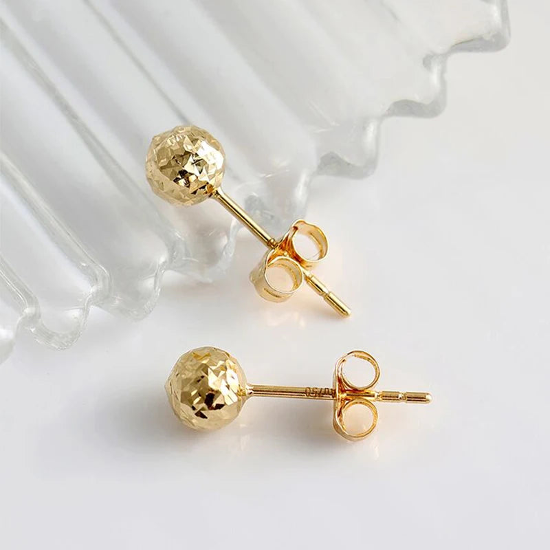 Real 18K Gold Ball Stud Earrings Pure Solid AU750 Gold Bead Earring for Women Gold Jewellery