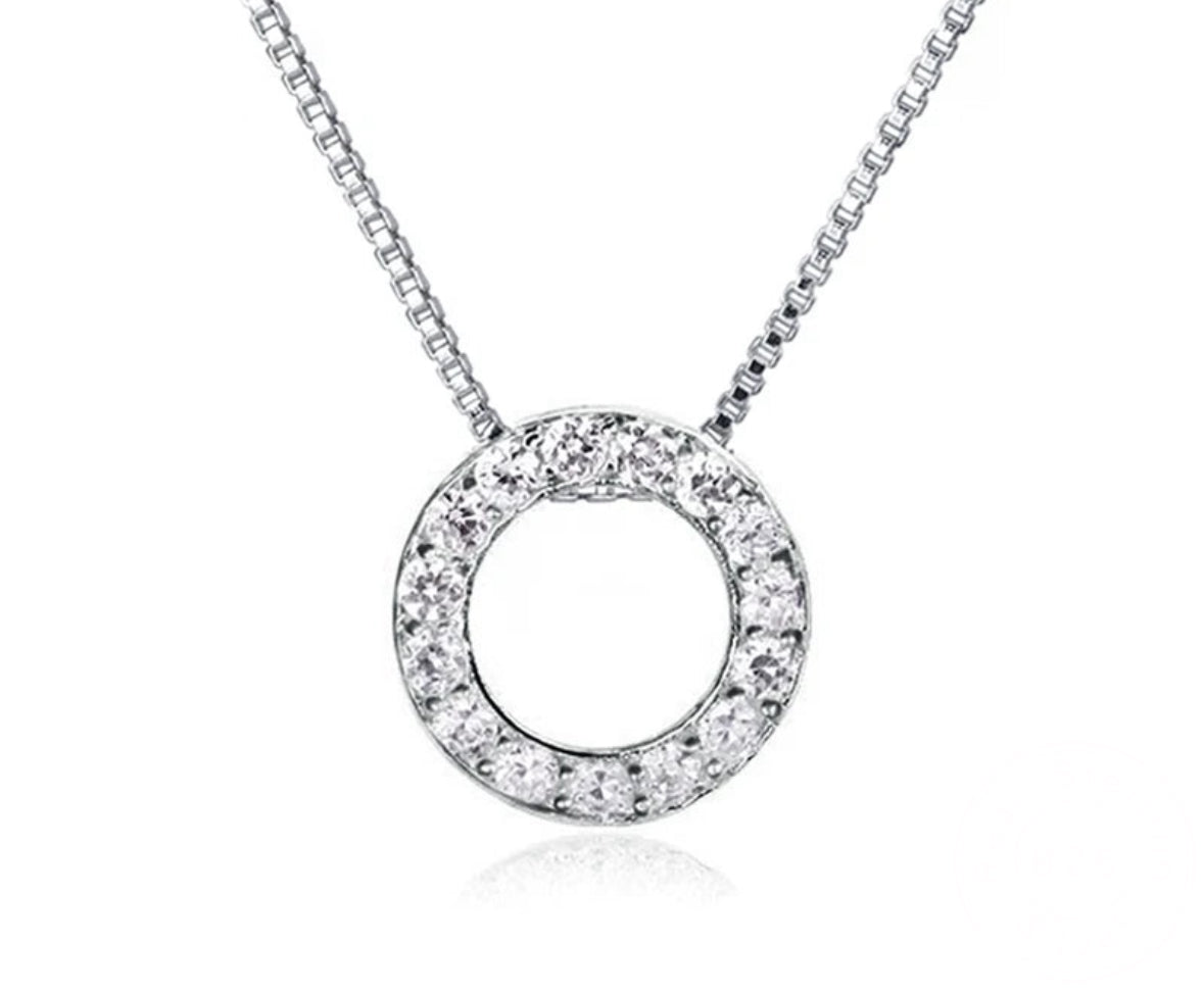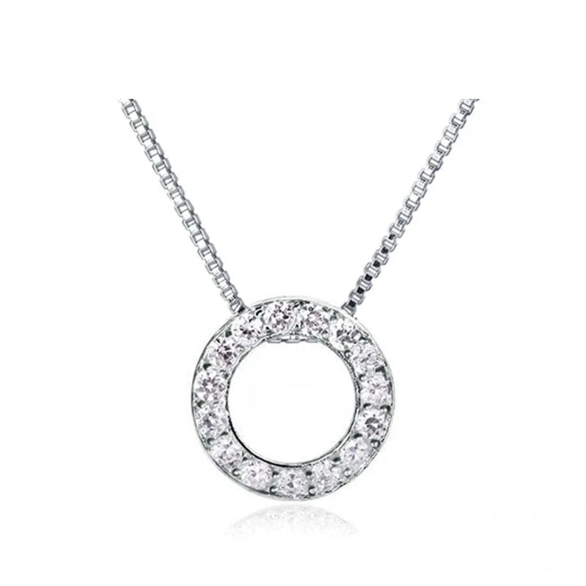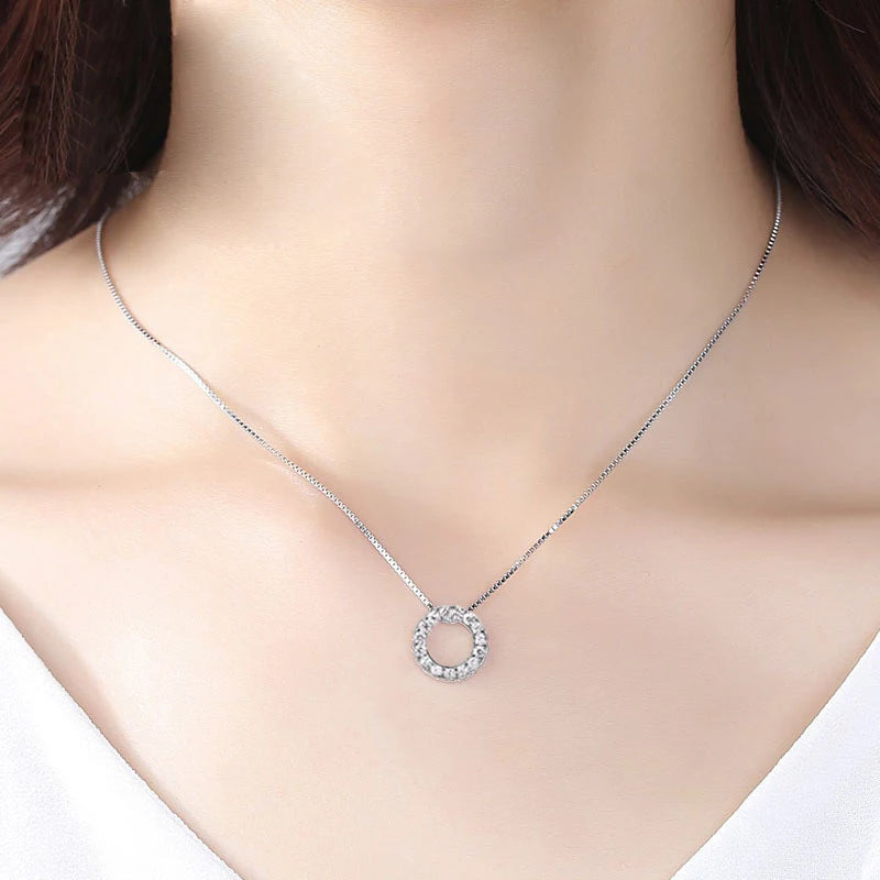 Round Shape Zirconia Sterling Silver Pendant Necklaces Box Chain
