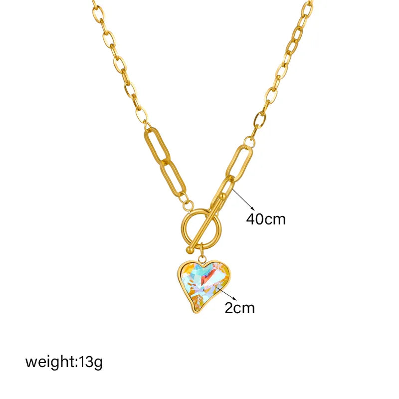 Stainless Steel Colorful Dazzling Heart Pendant Necklace For Women Girl Waterproof Jewelry