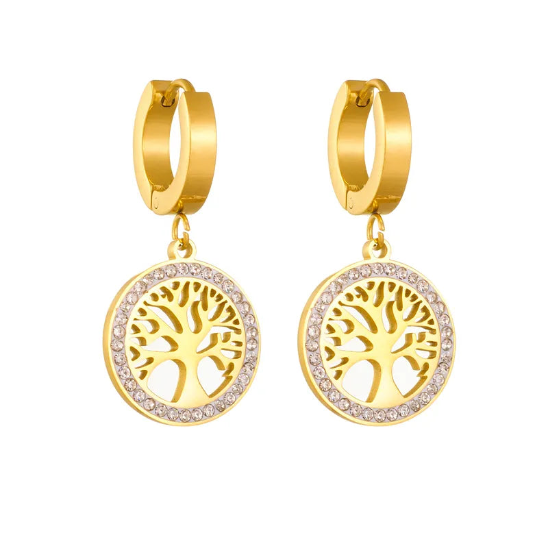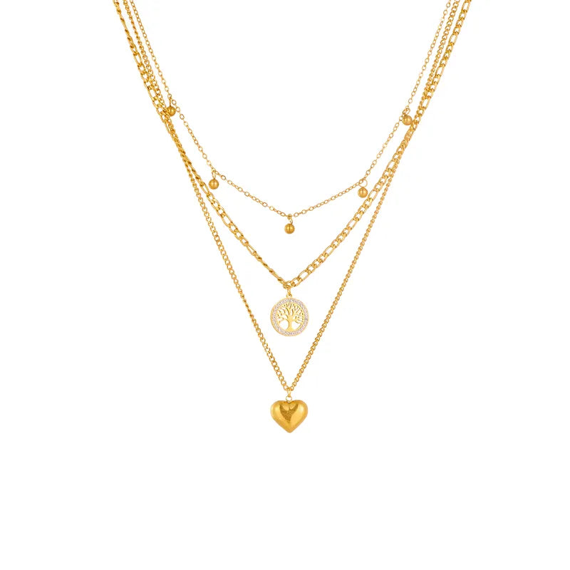 Stainless Steel Heart Tree Pendant Necklace Earrings For Women Girl Non-fading Chain Choker Jewelry Set