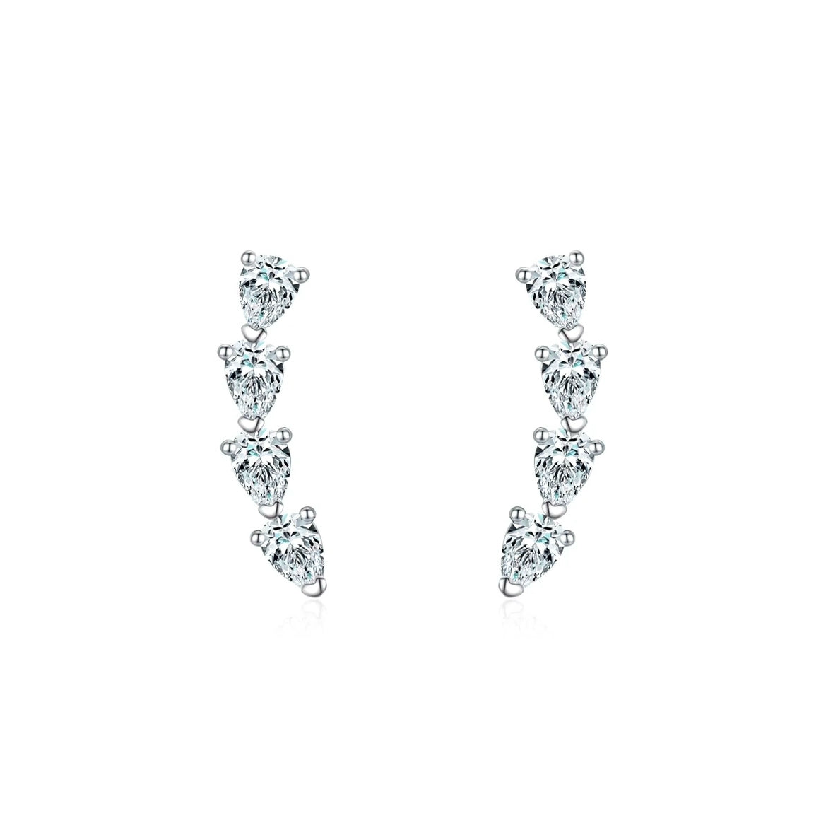Sterling Silver Drop Shape Dazzling CZ Long Earrings