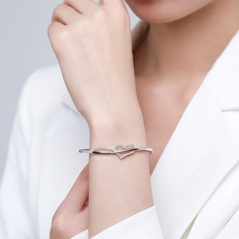 Sterling Silver Zirconia Love Hearts Bracelet & Bangle