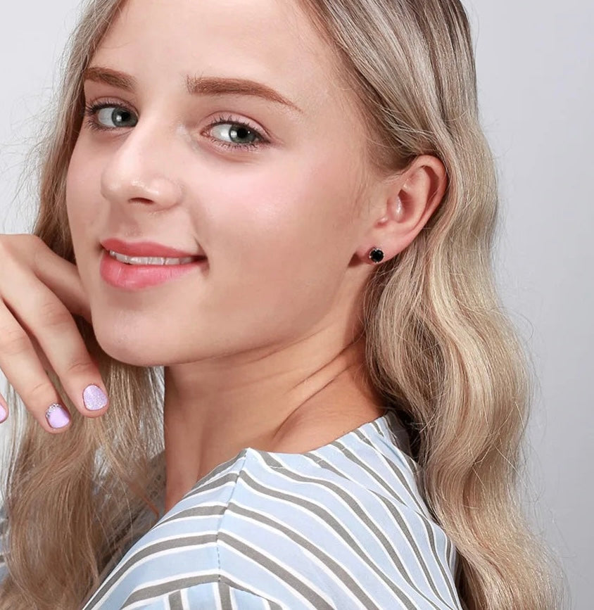 Black CZ Sterling Silver Stud Earrings For Women Men